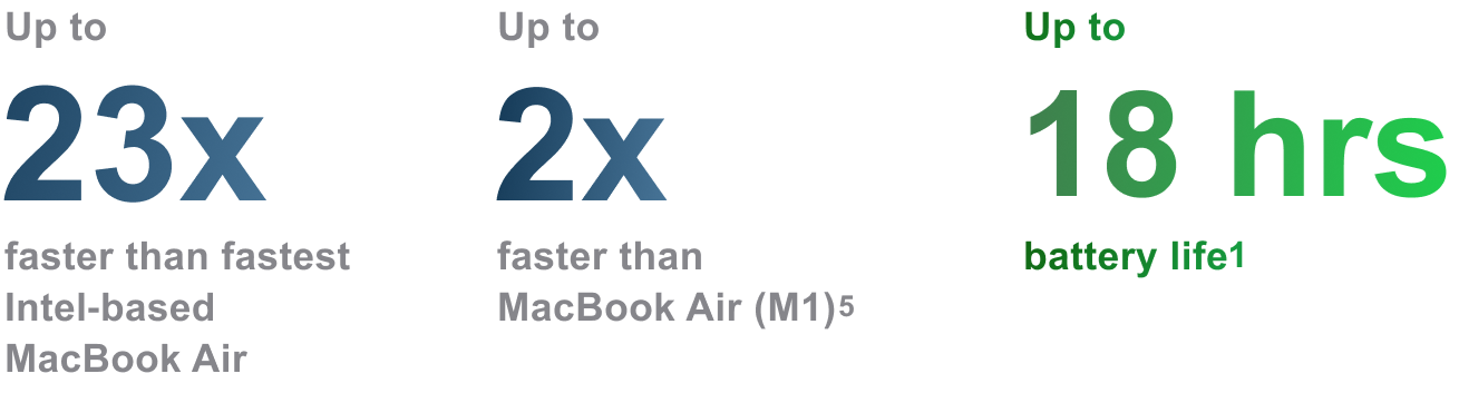 If you love iPhone, you’ll love Mac. MacBook Air has up to 18 hours of battery life. And it supports fast charge, getting up to 50 percent in just 30 minutes. MacBook Air has up to 18 hours of battery life. And it supports fast charge, getting up to 50 percent in just 30 minutes.